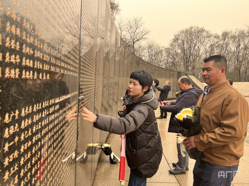 双峰县退役军人事务局组织14名烈士亲属代表,赴沈阳抗美援朝烈士陵园祭奠先烈,缅怀抗美援朝保家卫国战争中壮烈牺牲的双峰籍革命烈士。图为烈属们找寻亲人的名字。(图片来源:央广网)