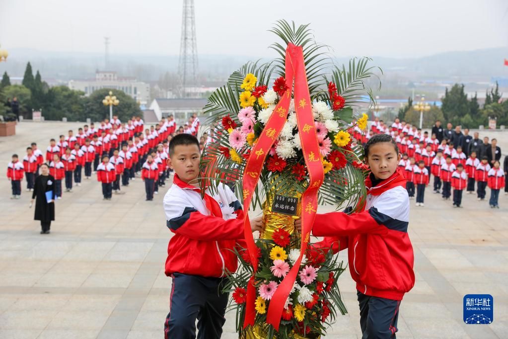 3月30日,在安徽省滁州市来安县半塔镇的皖东烈士陵园,学生为革命先烈献花。(图片来源:新华网)