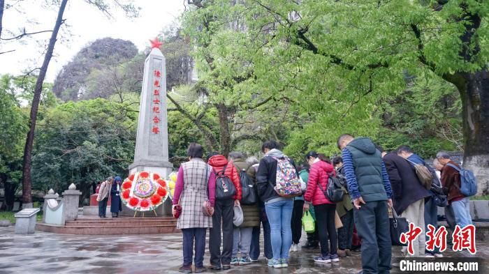 3月25日,由桂林市黄埔军校同学会、桂林市黄埔军校同学会后代联谊会主办的“传承红色基因缅怀革命先烈—桂林黄埔后代清明祭扫活动”在桂林举行,黄埔后代近60人参加活动。图为黄埔后代在陈光烈士墓举行祭奠活动。(图片来源:中新网)