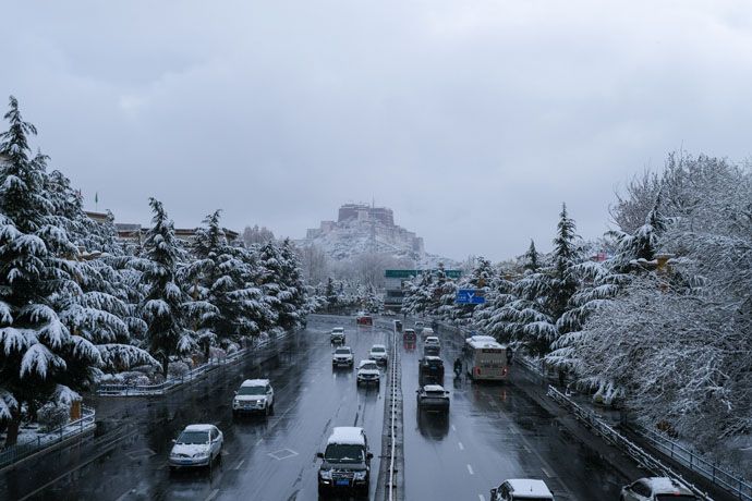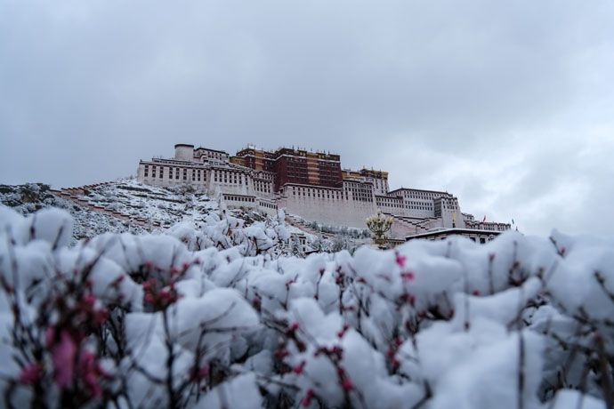 银装素裹 古城拉萨迎来“桃花雪”