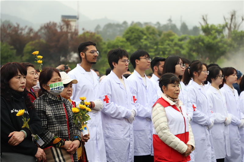 3月28日,位于重庆市璧山区西郊福寿园内的重庆市人体器官捐献纪念园广场,“生命·遇见——重庆市2023年遗体器官捐献缅怀纪念活动”在此如期举行。图为市民和医学院学生向捐献者默哀。(图片来源:人民网)