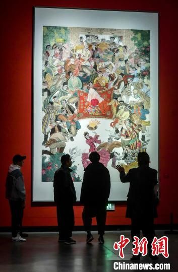 高3.5米,宽2.5米的中国画《婚礼》吸引参观市民。(图片来源:中新网)