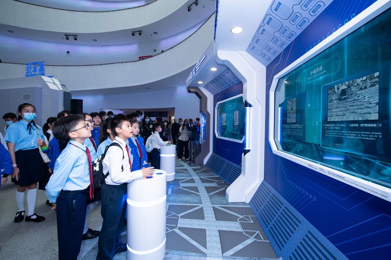 此次展览有别于传统展览,主要采用多媒体互动形式,将记录了澳门近一百八十年巨大变化的逾350张照片呈现在观众面前,包括中葡谈判、《中葡联合声明》签署、澳门基本法颁布和实施等重要历史时刻的照片。(图片来源:央视新闻)