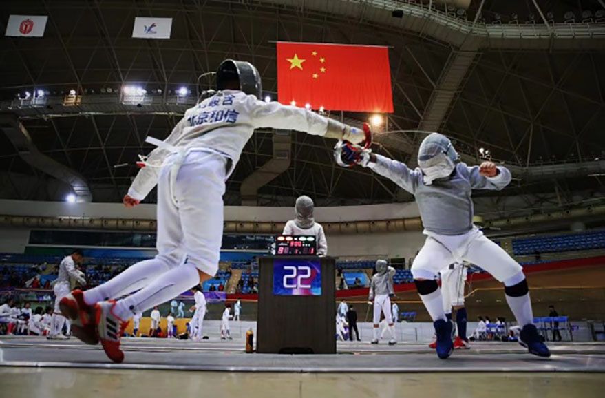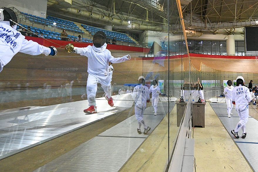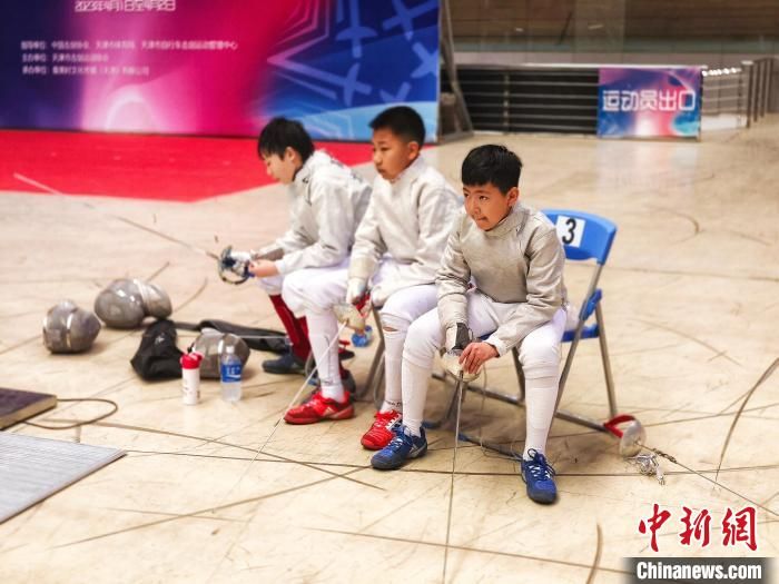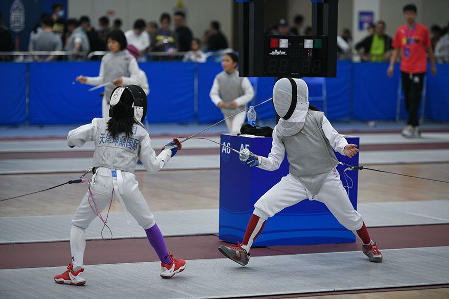 这是天津承办的首个全国青少年击剑赛事。这一中国击剑协会B级认证赛事为期两天,设U8、U10、U12、U14、U16五个年龄组,项目设有男子重剑、女子重剑、男子花剑、女子花剑、男子佩剑、女子佩剑。(图片来源:新华社)