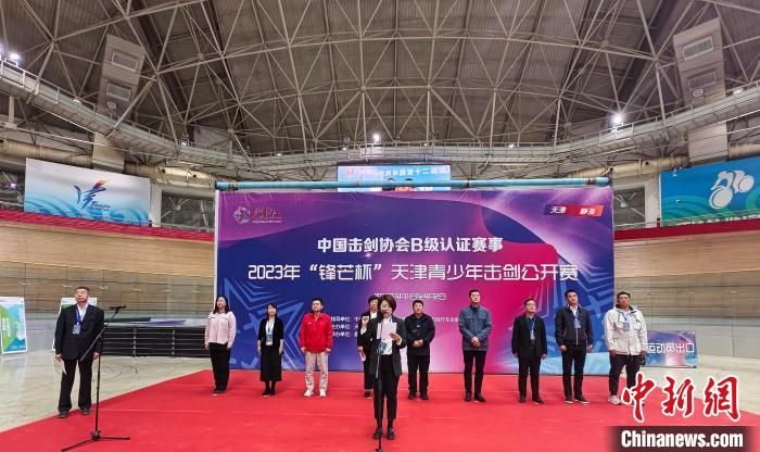 2023年“锋芒杯”天津青少年击剑公开赛开幕式现场。(图片来源:中新网)