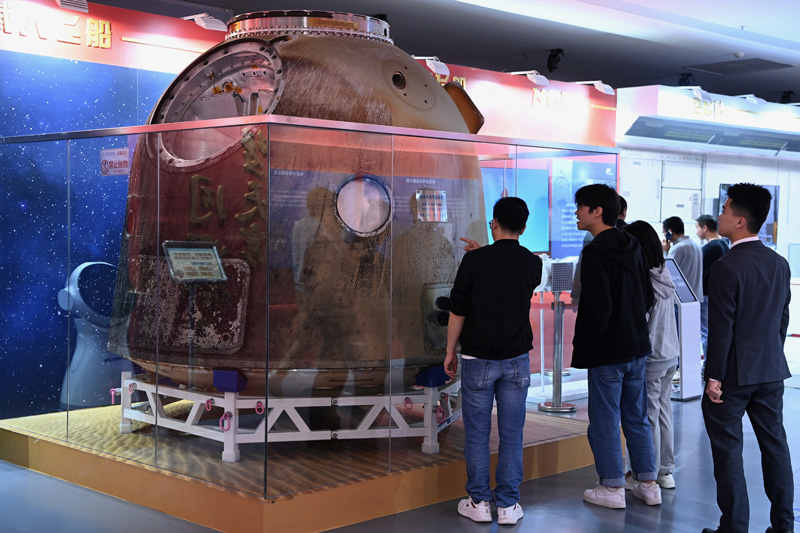 嘉宾参观天和核心舱等比例模型。(图片来源:新华网发/主办方供图)