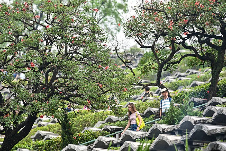 4月5日,清明节假期,市民来到广州市新塘公墓中华墓园祭扫。(图片来源:中新社)