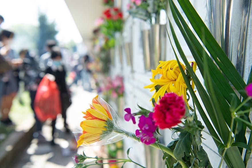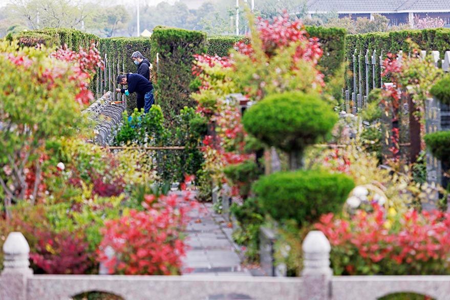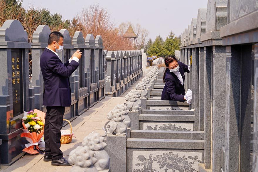 4月1日,黑龙江哈尔滨,墓园工作人员进行“代祭扫”服务。当日,哈尔滨市迎来清明节祭扫高峰。(图片来源:中新社)