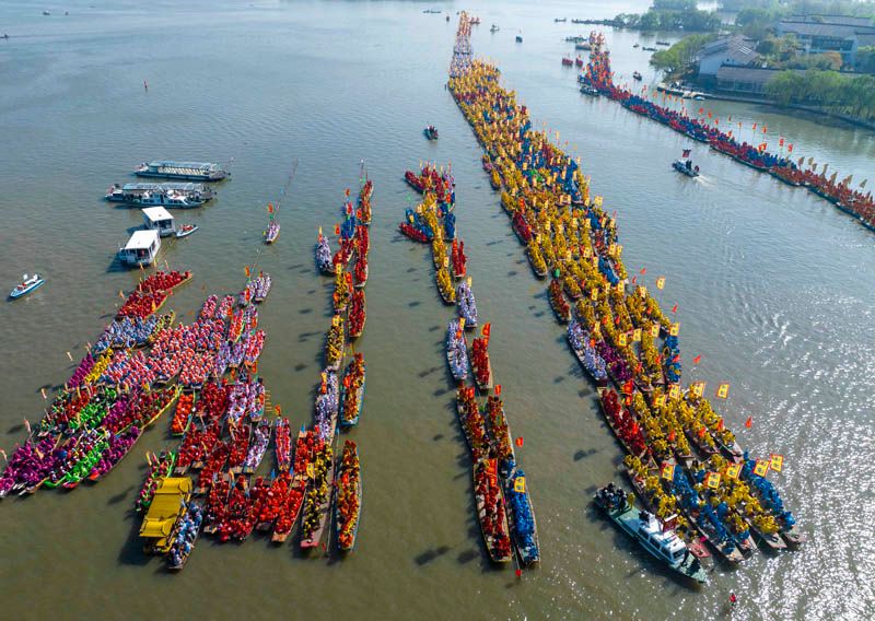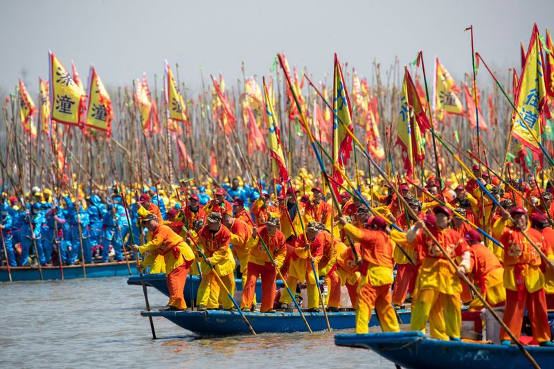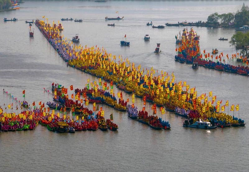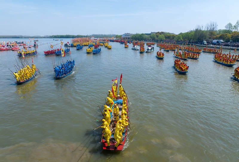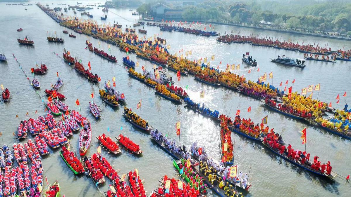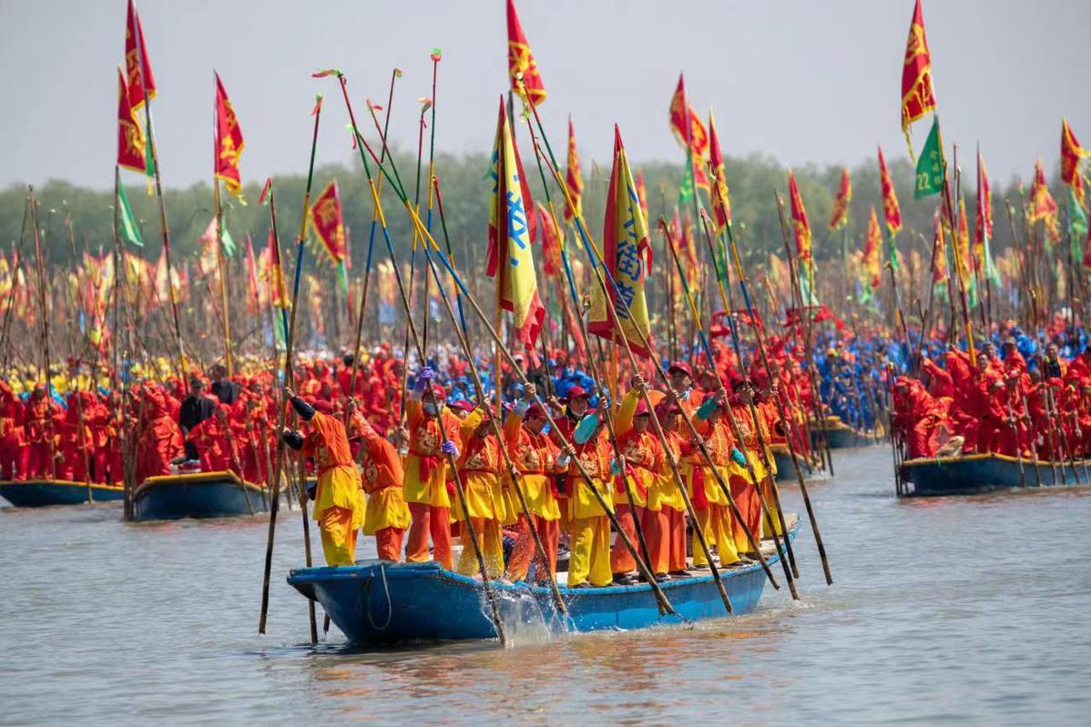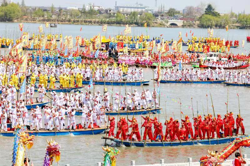 4月8日,2023溱潼会船节在江苏省泰州市姜堰区溱湖国家湿地公园开幕。(图片来源:中国日报网)