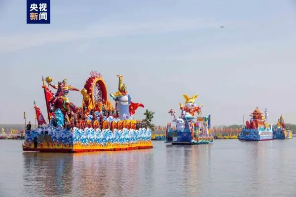 现场数万中外嘉宾、游客共赏湿地风情,见证“世界最大的水上庙会”壮观景象。(图片来源:中国日报网)