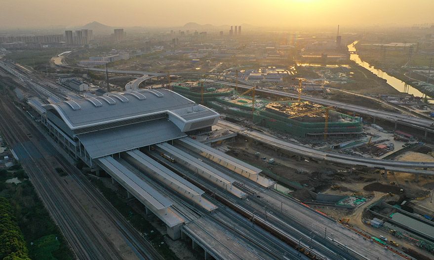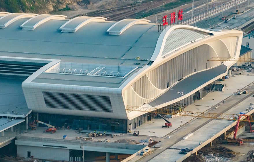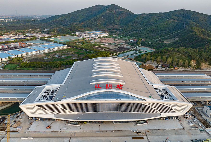 沪宁沿江高速铁路江阴站站房“巨轮启航”展雄姿