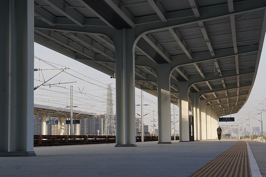 新建江阴站站房总建筑面积约4.2万平方米,车场规模为4台10线,集高铁、普铁、市域轨道及城市客运于一体(图片来源:中新社)