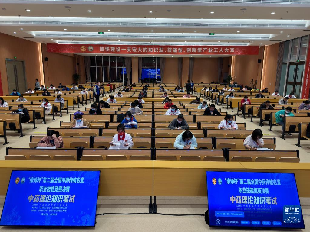 4月12日,在江苏省连云港市举行的第二届全国中药传统名堂职业技能竞赛决赛上,选手参加中药理论知识笔试。(图片来源:新华网)