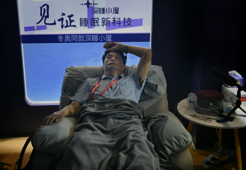 参展观众体验智能化深睡小屋。(图片来源:央广网)