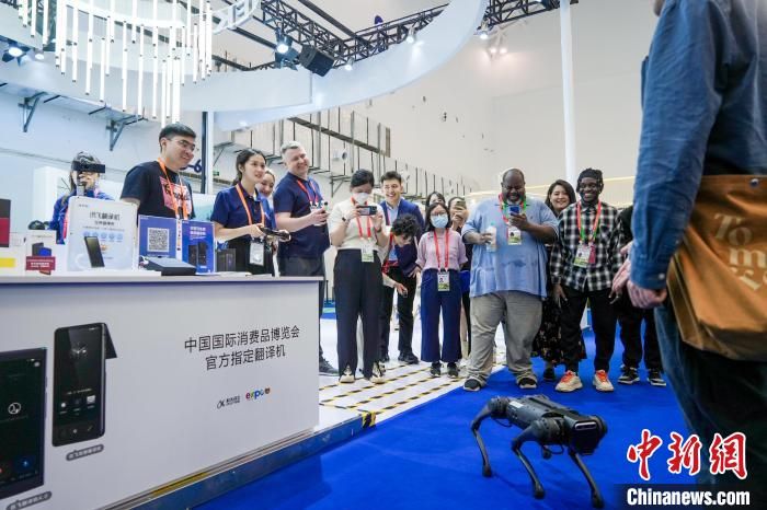 科大讯飞的机器狗在消博会展台引发围观。(图片来源:中新网)![]()