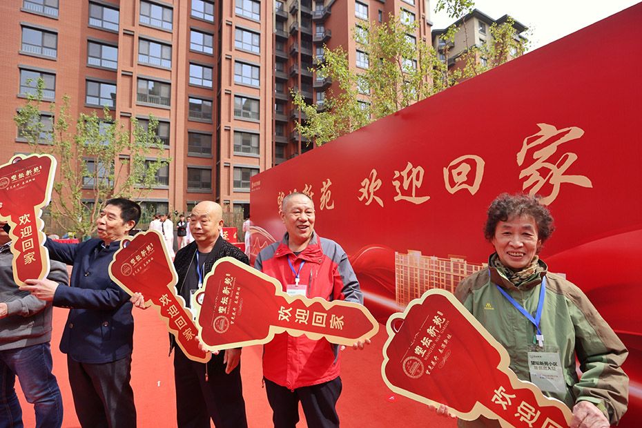 回迁仪式现场,象征开启幸福之门的“金钥匙”被交付到居民代表手中。(图片来源:《北京日报》新浪官方号)