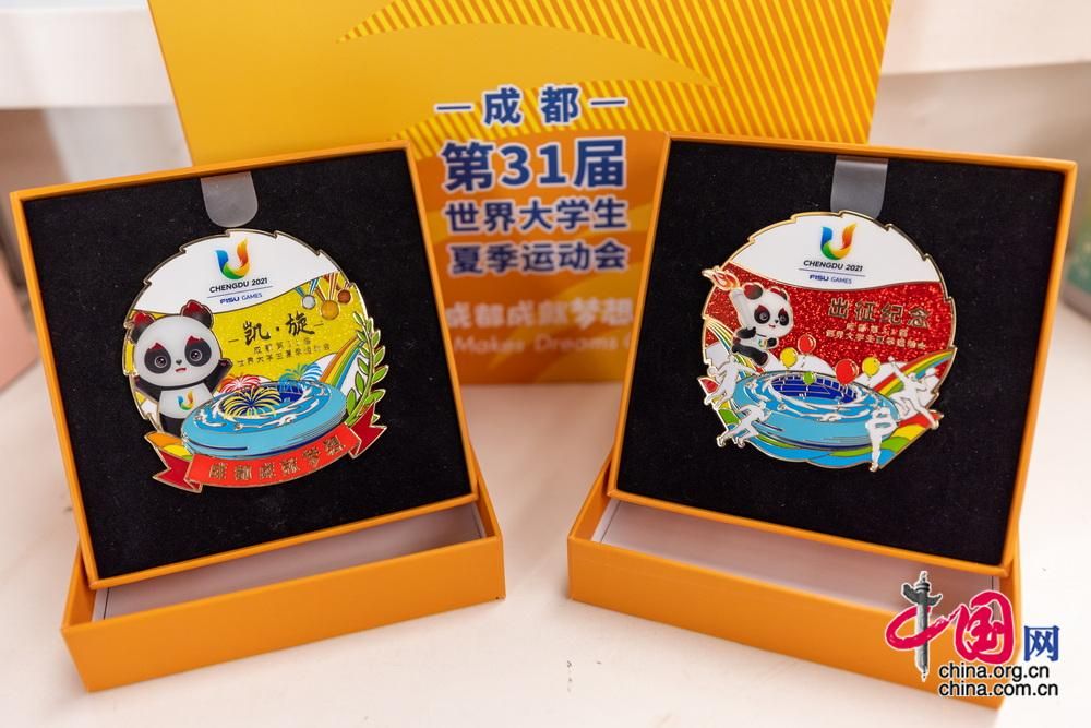 成都大运会中国队出征、凯旋纪念徽章。(图片来源:中国重点新闻网站中国网)
