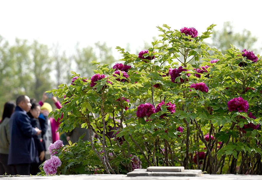谷雨时节,北京圆明园内万余平方米的牡丹花竞相开放,吸引众多游客前来。(图片来源:新华社)