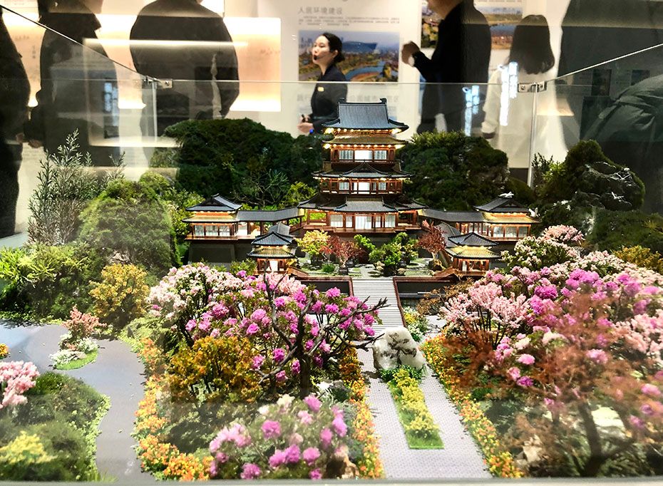 成都世园会核心建筑、彰显盛唐风格的“散花楼”模型。