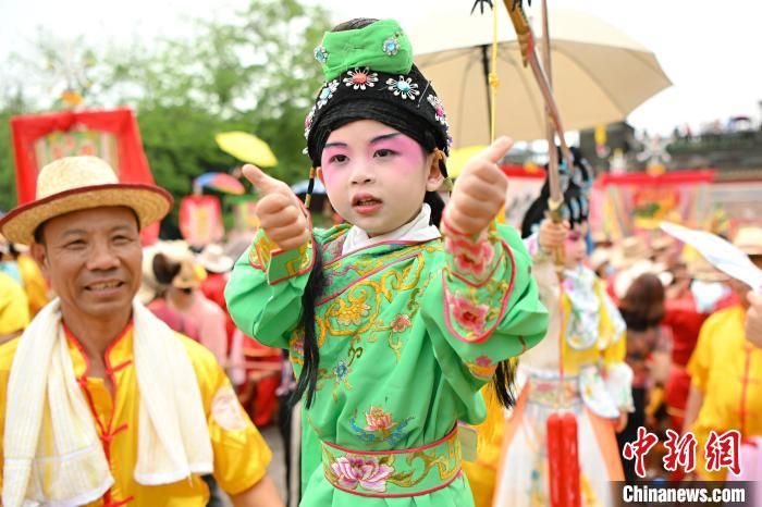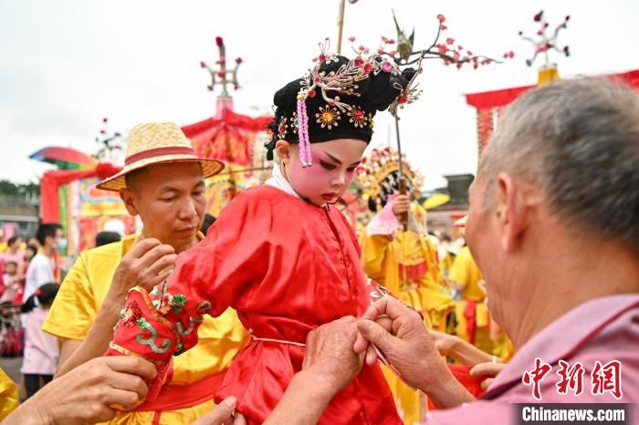 4月22日,广东省广州市,沙湾飘色的小演员。(图片来源:中新社)