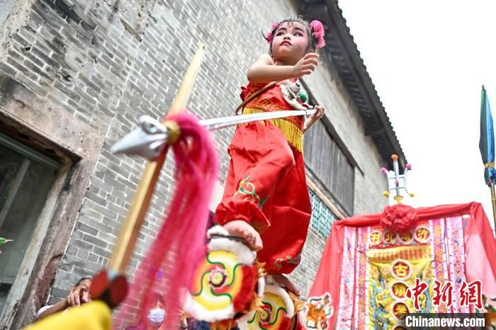 4月22日,广东省广州市,沙湾飘色方阵穿梭在沙湾街的巷子里。(图片来源:中新社)