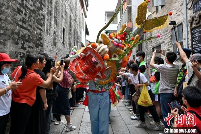 鳌鱼方阵穿梭在沙湾街的巷子里。(图片来源:中新网)