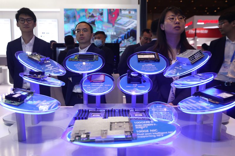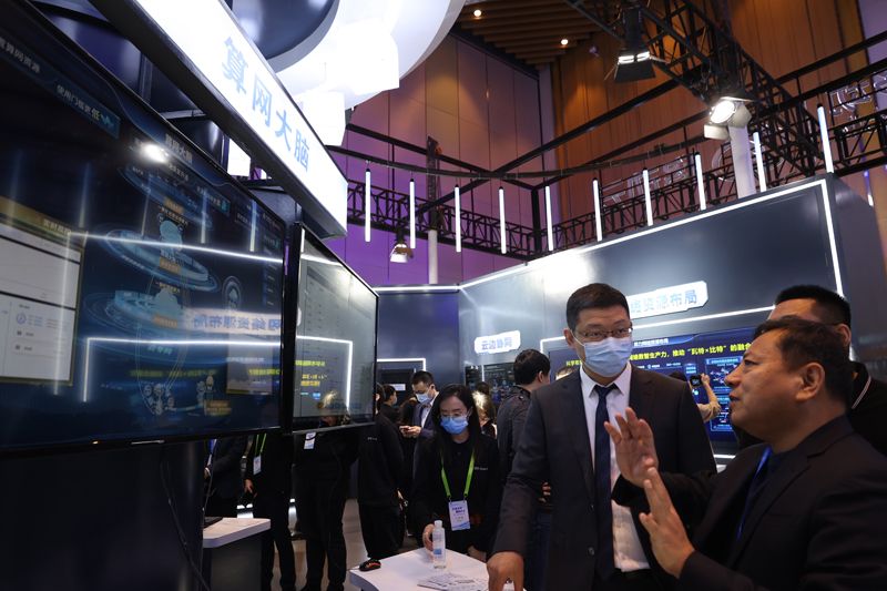 在大会展厅,“算网大脑”吸引参观嘉宾。(图片来源:中新社)![]()