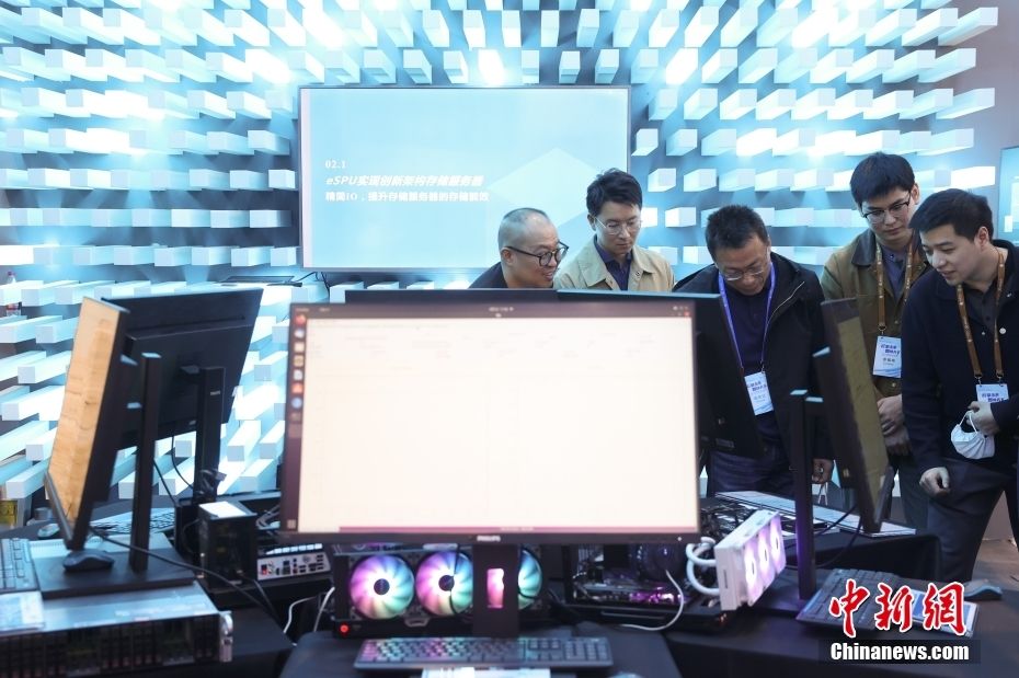 在大会展厅,一企业的存储服务器吸引客商。(图片来源:中新网)