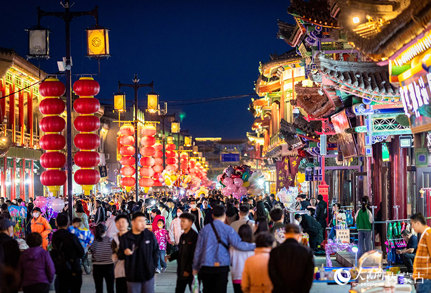 4月30日,游客在呼和浩特市玉泉区塞上老街区块夜市游玩。(图片来源:人民网)