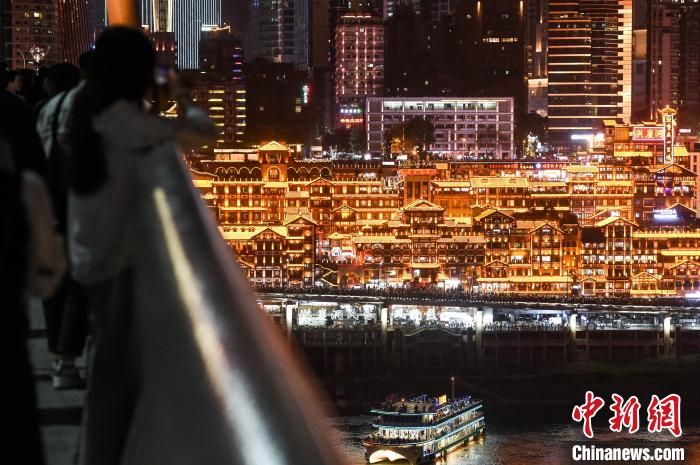 4月29日,“五一”假期首日,重庆洪崖洞人气爆棚。夜幕下的洪崖洞灯火辉煌,美轮美奂,吸引全国各地的游客前来观赏游玩、打卡拍照。(图片来源:中新网)