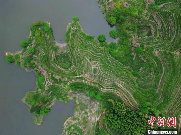 在安徽省安庆市岳西县毛尖山乡有机茶田示范区,一行行茶树攀附在丘陵山地间。漫山遍野绿意盎然,风景秀美。(图片来源:中新网)