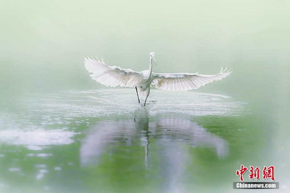 初夏时节,在河南省信阳市新县,良好的生态环境吸引了众多鸟类在此“安营扎寨”,图为白鹭。(图片来源:中新网)