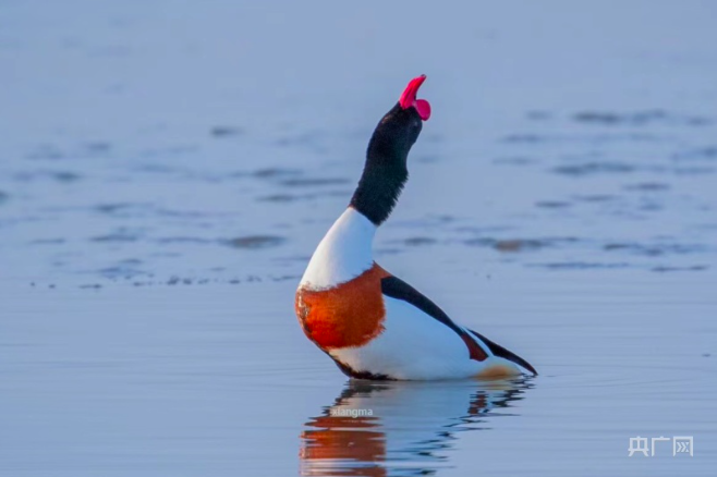近日,青海省海西蒙古族藏族自治州,尕斯库勒湖拍摄到珍稀水鸟翘鼻麻鸭。(图片来源:央广网)