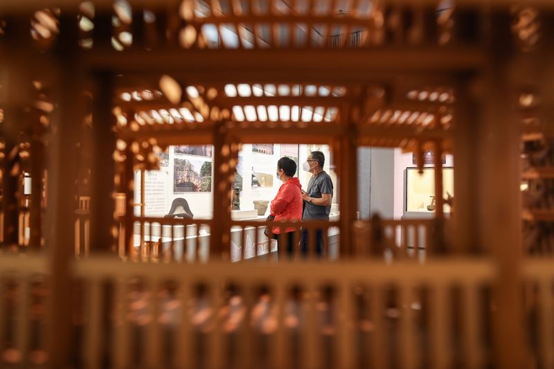5月18日,“万桥飞架——贵州桥文化展”在位于贵州省贵阳市的贵州省博物馆开展。图为参观者在展厅参观。(图片来源:中新社)