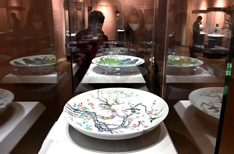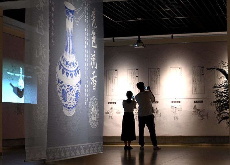 5月17日,市民在河北省石家庄市博物馆参观展览。为迎接"5·18国际博物馆日",由河北省石家庄市文广旅局主办的石家庄市馆藏陈设瓷精品展日前在该市博物馆开展,共展出明、清、民国时期的精品瓷器56件。(图片来源:新华社)