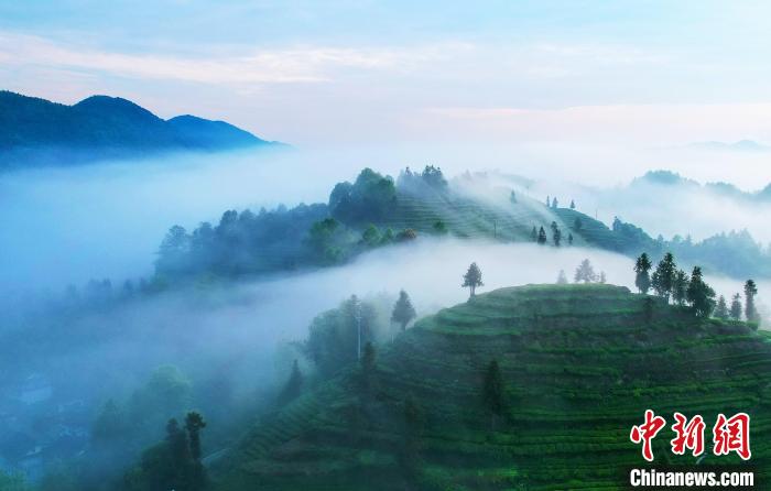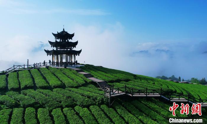 近日,湖北省宣恩县万寨乡伍家台村贡茶山云雾缭绕,美如仙境。