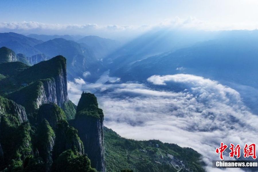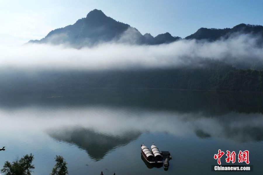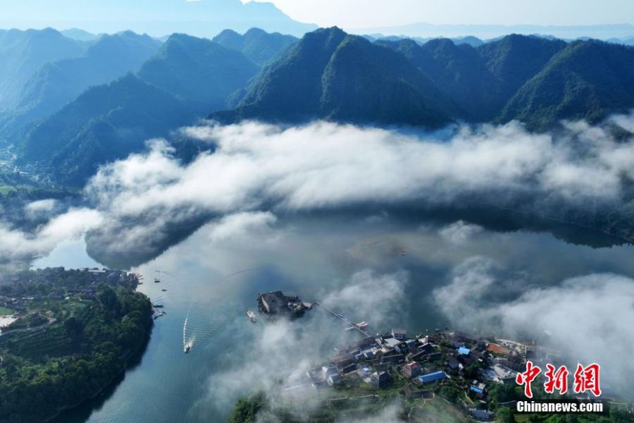 5月中旬,在重庆市酉阳土家族苗族自治县酉水河镇河湾山寨,航拍云雾下的酉水河美若仙境。(图片来源:本文图片均综编自中新网)