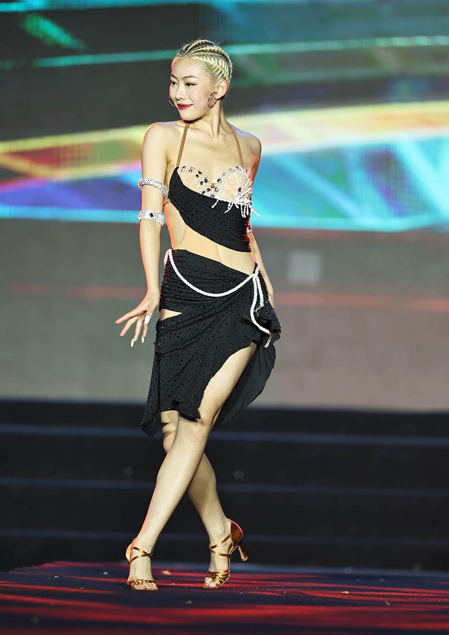 图为第72届世界小姐中国区才艺冠军周弈芮在比赛中跳起火辣的拉丁舞。