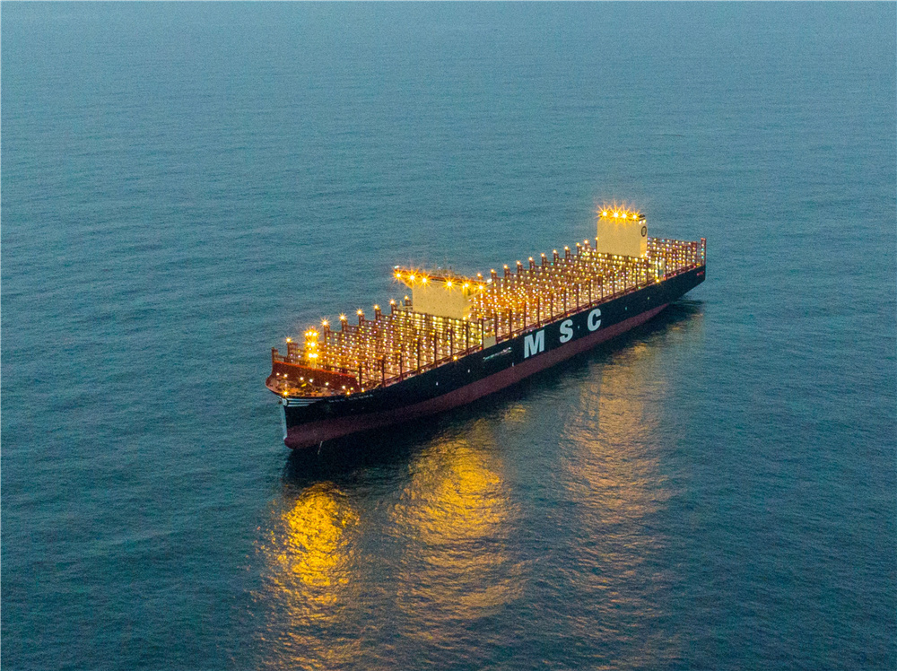 【欧洲时报网】5月22日,中国船舶集团有限公司旗下沪东中华造船(集团)有限公司联合中国船舶工业贸易有限公司,为工银金融租赁有限责任公司和瑞士地中海航运公司(MSC)建造的全球最大级别24116TEU超大型集装箱船系列3号船“地中海 吉玛”号(MSC GEMMA),在上海中船长兴造船基地命名交付。这不仅是沪东中华在短短75天时间里完工交付的第3艘同系列船,进一步稳固了其世界超大型集装箱船建造领域的领军地位,也成就了MSC成为全球第一家运力突破500万TEU大关的集装箱航运公司。
