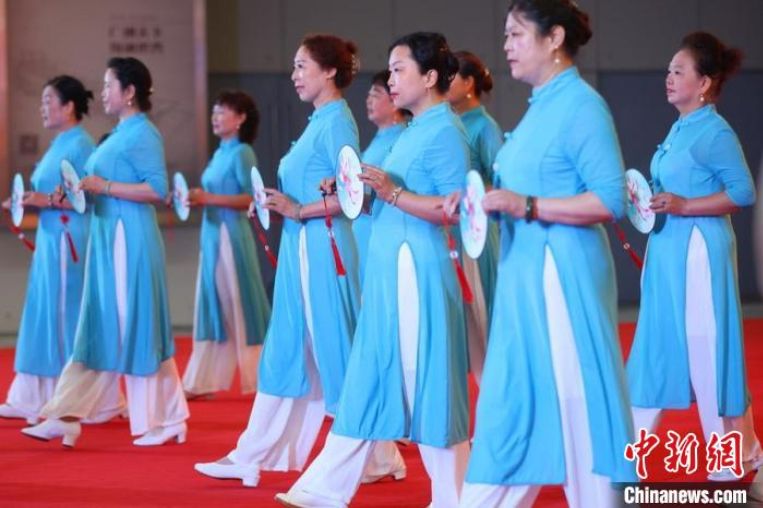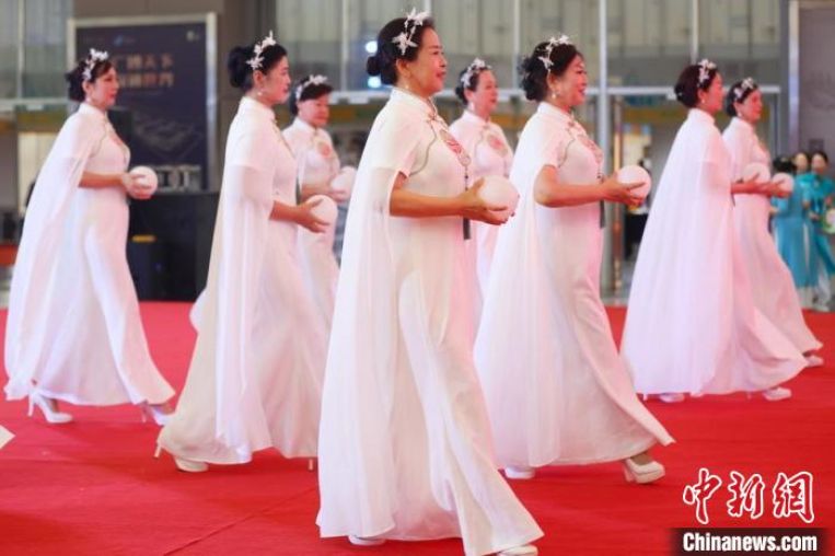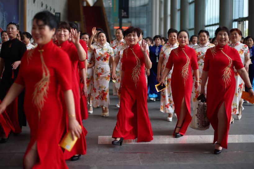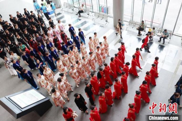 身着旗袍的女士巡游场馆。(图片来源:中新网)