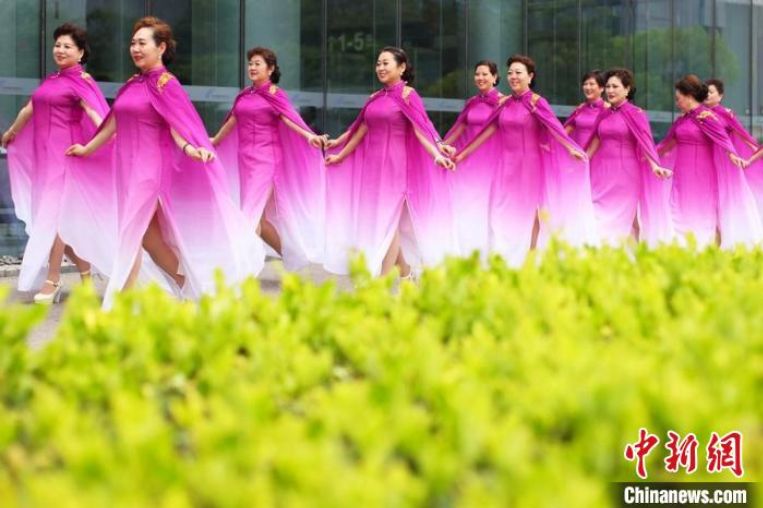 旗袍爱好者展示旗袍。(图片来源:中新网)