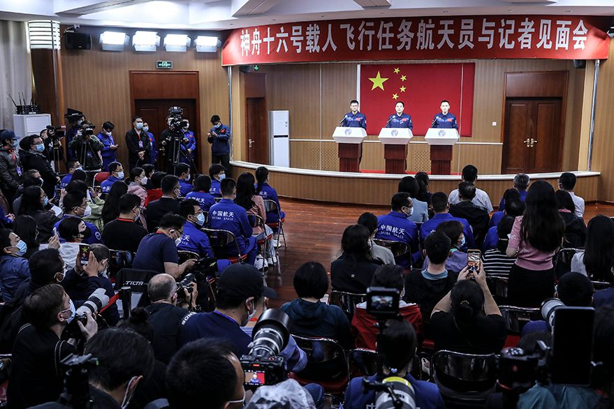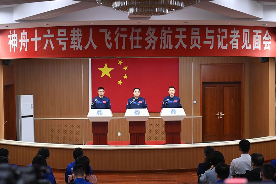 5月29日,神舟十六号载人飞行任务新闻发布会在酒泉卫星发射中心举行,公布执行神舟十六号载人飞行任务的3名乘组航天员。