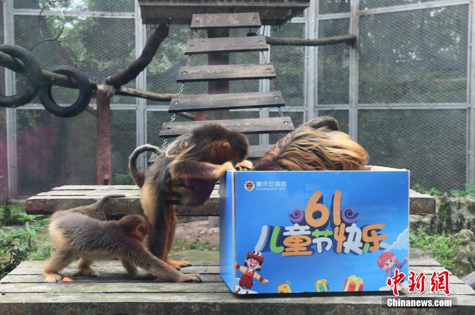 金丝猴拆盲盒过“六一”。(图片来源:中新网)