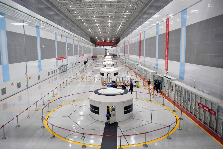 河北丰宁抽水蓄能电站1号机母线洞内,工作人员正在进行运维工作。(图片来源:中新网)