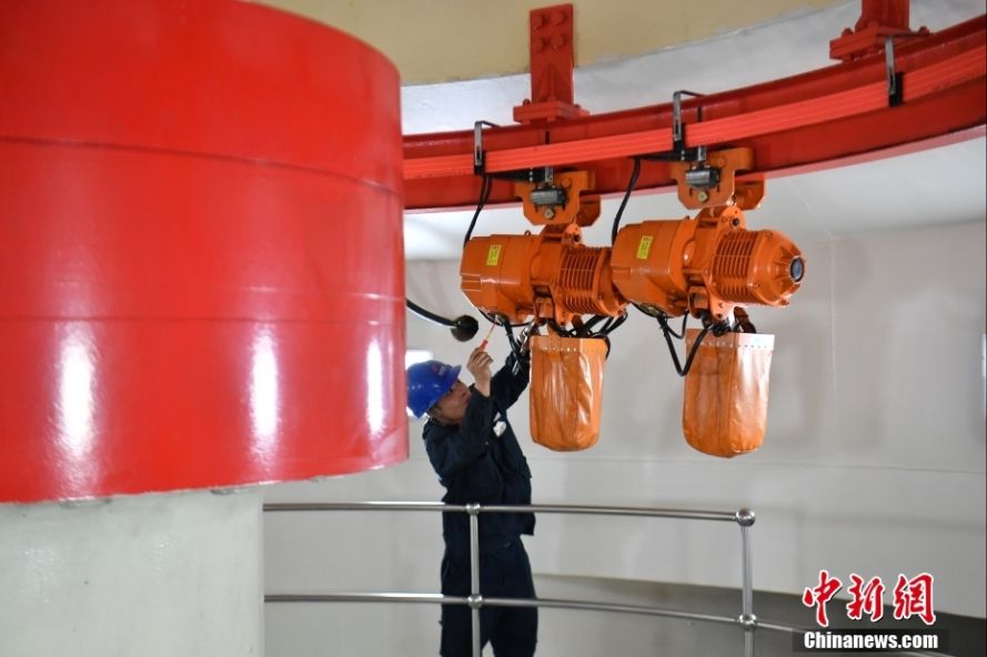 河北丰宁抽水蓄能电站1号机水车室内,工作人员正在进行运维工作。(图片来源:中新网)
