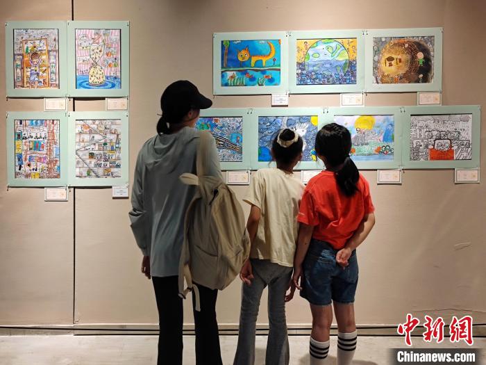 孩子们用绘画作品展现从稚龄、懵懂到青葱年华的“光阴的故事”。(图片来源:中新网)