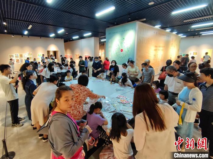 孩子们在画展现场参与手工活动。(图片来源:中新网)