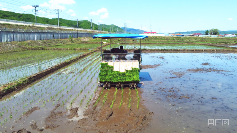 吉林安图县各地农户抢抓农时,有序展开插秧工作。(图片来源:央广网)