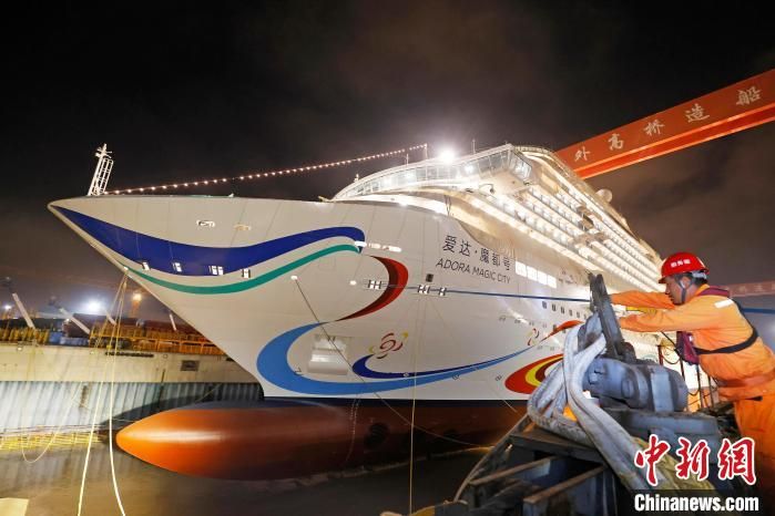 成功起浮的中国首艘国产大型邮轮“爱达·魔都号”。
