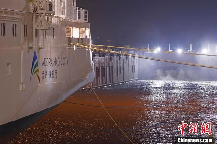 6月1日凌晨2时,中国首艘国产大型邮轮“爱达·魔都号”开始注水起浮。